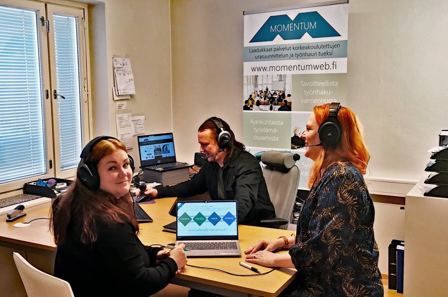 Ihan perinteinen kolmivuotinen ESR-rahoitteinen hanke Momentum ei ole. Lopakka kertoo, että aiempien hankkeiden palautteista on opittu ja Momentumissa ne siirretään nyt käytäntöön. Yksi selkeästi tunnistettu urasuunnittelun aukko ammottaa korkeastikoulutettujen maahanmuuttajien kohdalla.